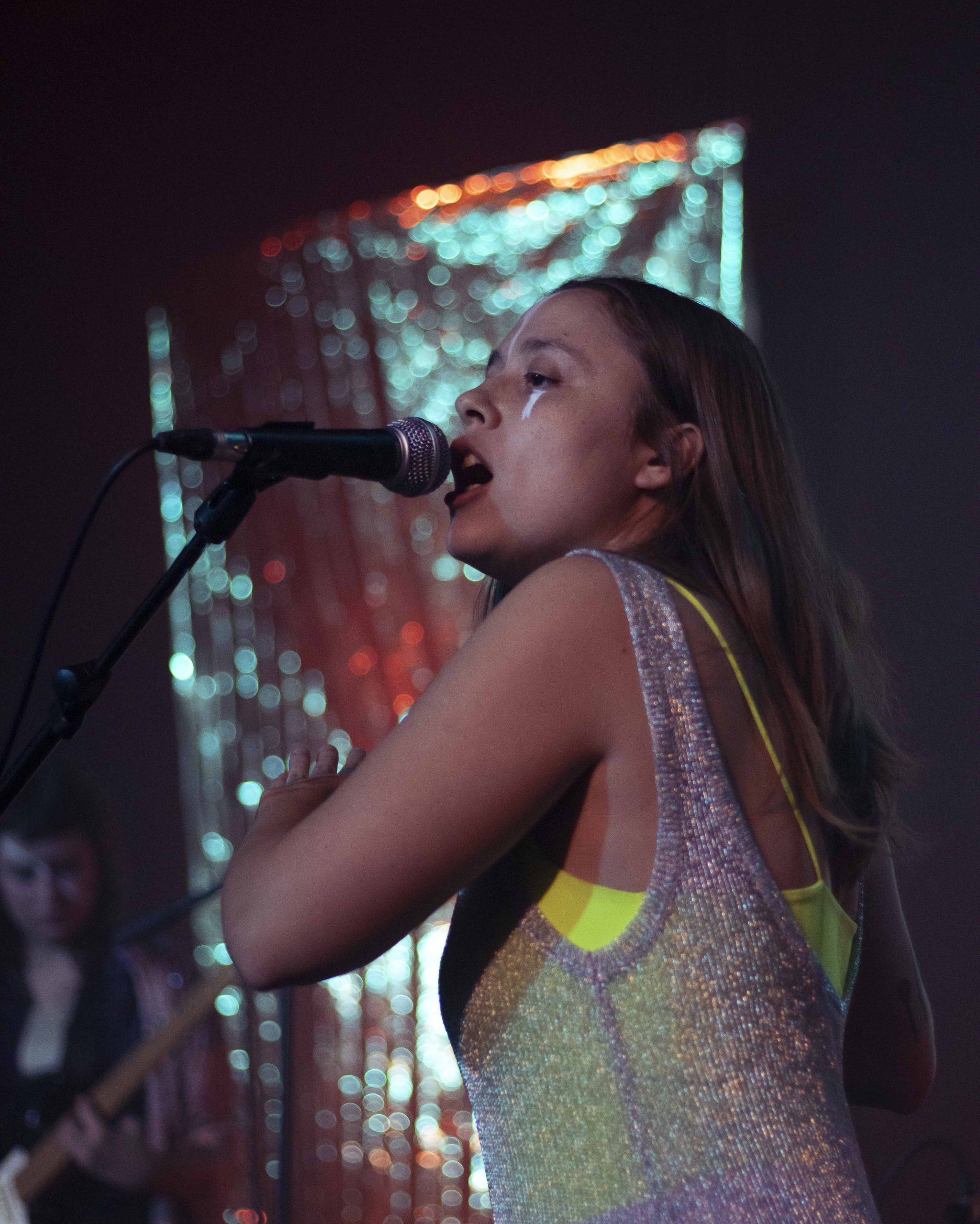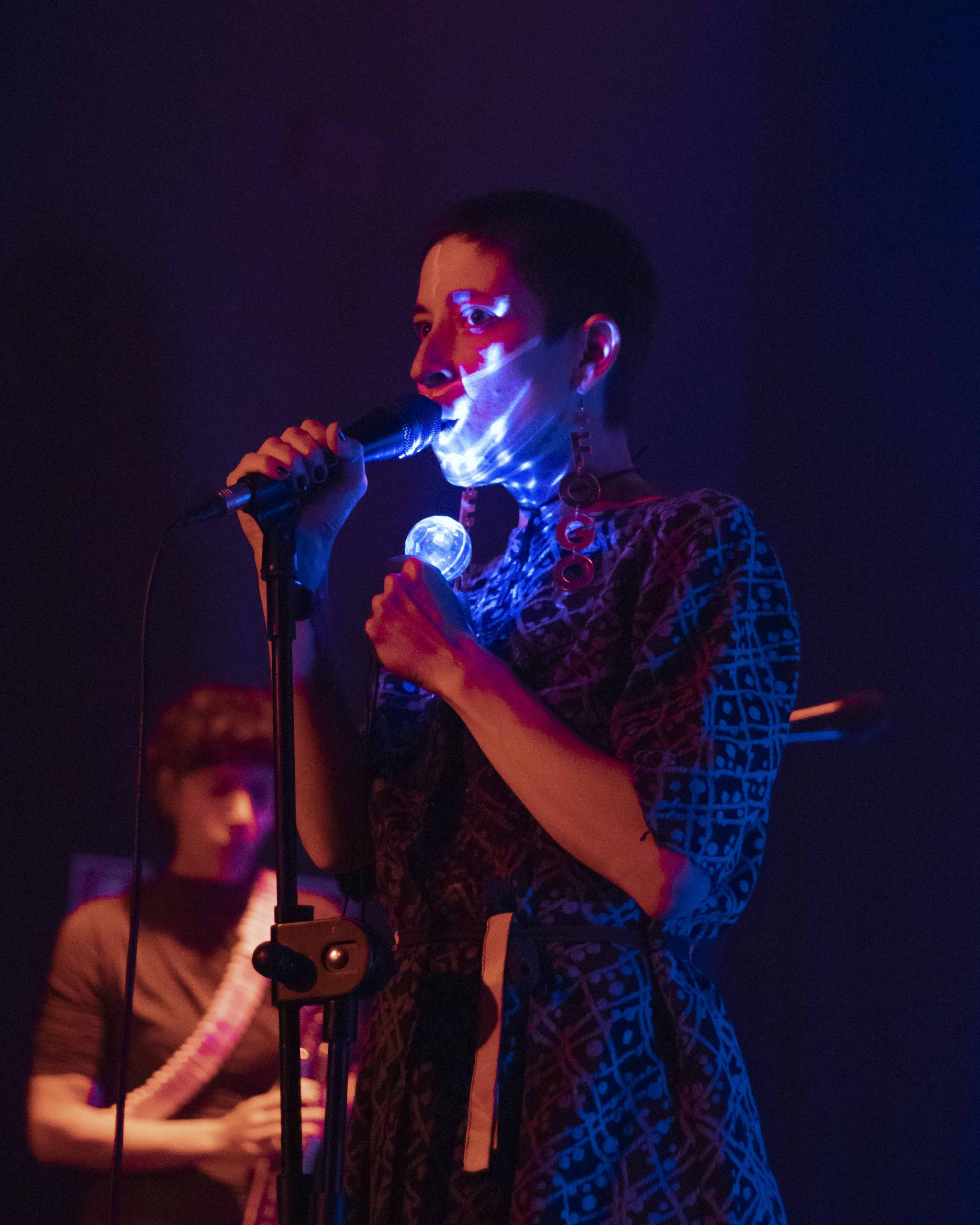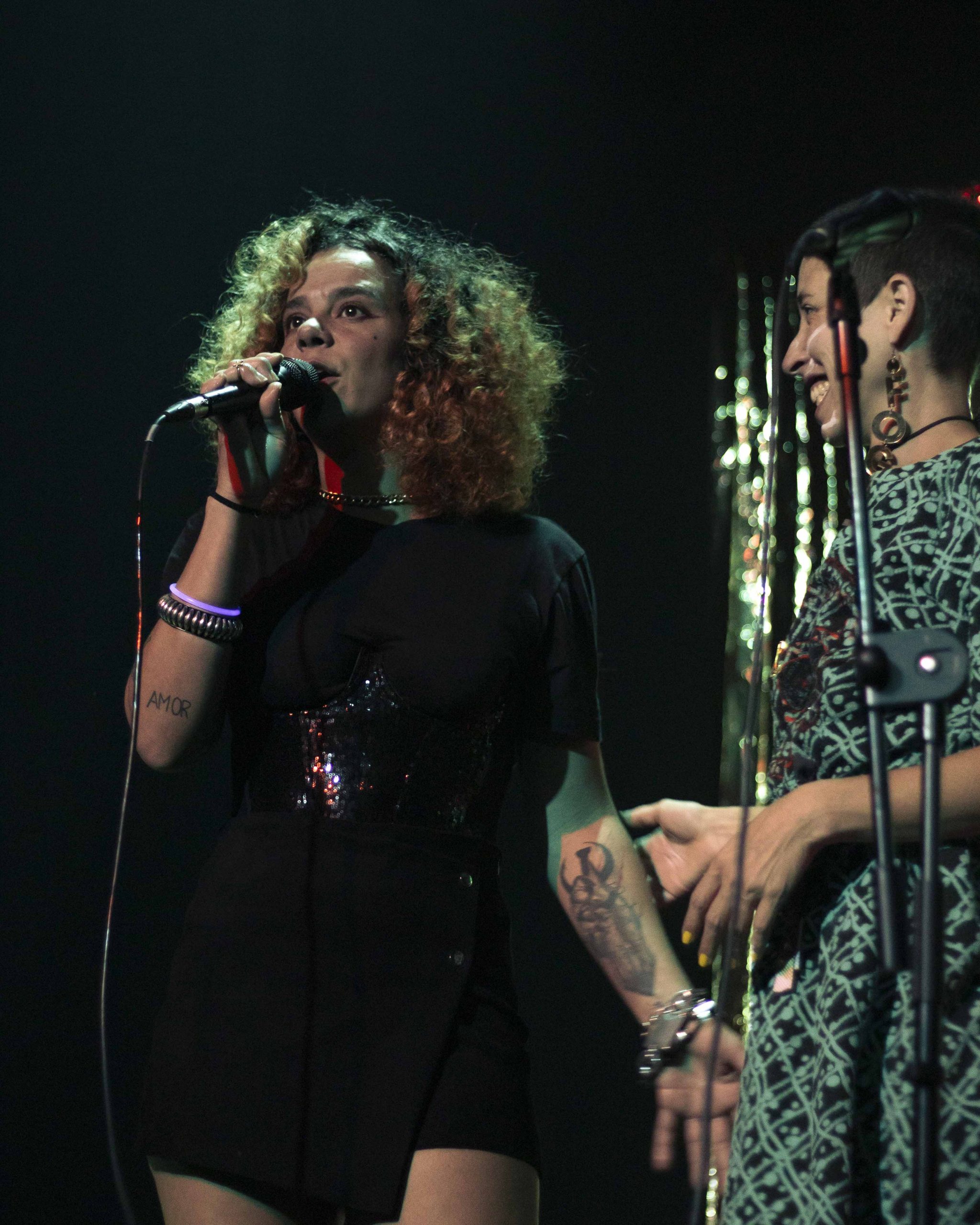 As canções, ancoradas em experiências do quotidiano, traziam sob a fachada humorística uma angústia consciente do absurdo da realidade. O primeiro single, Mirone Digital, levou a palco o doomscrolling e o lixo digital que consumimos para manter a cabeça distraída, porque “ser dá tanto trabalho”. Outras músicas como Mamografia Por Satélite, baseada numa história real, ou Xixi Vermelho, tema pertinente sobre o que é a menstruação na mente de uma criança, inspiram-se na necessidade de educar homens para a realidade feminina. E estamos muito gratos por isso! É mais do que necessária esta desconstrução e construção de ideias sobre o que os nossos corpos fazem ou não…