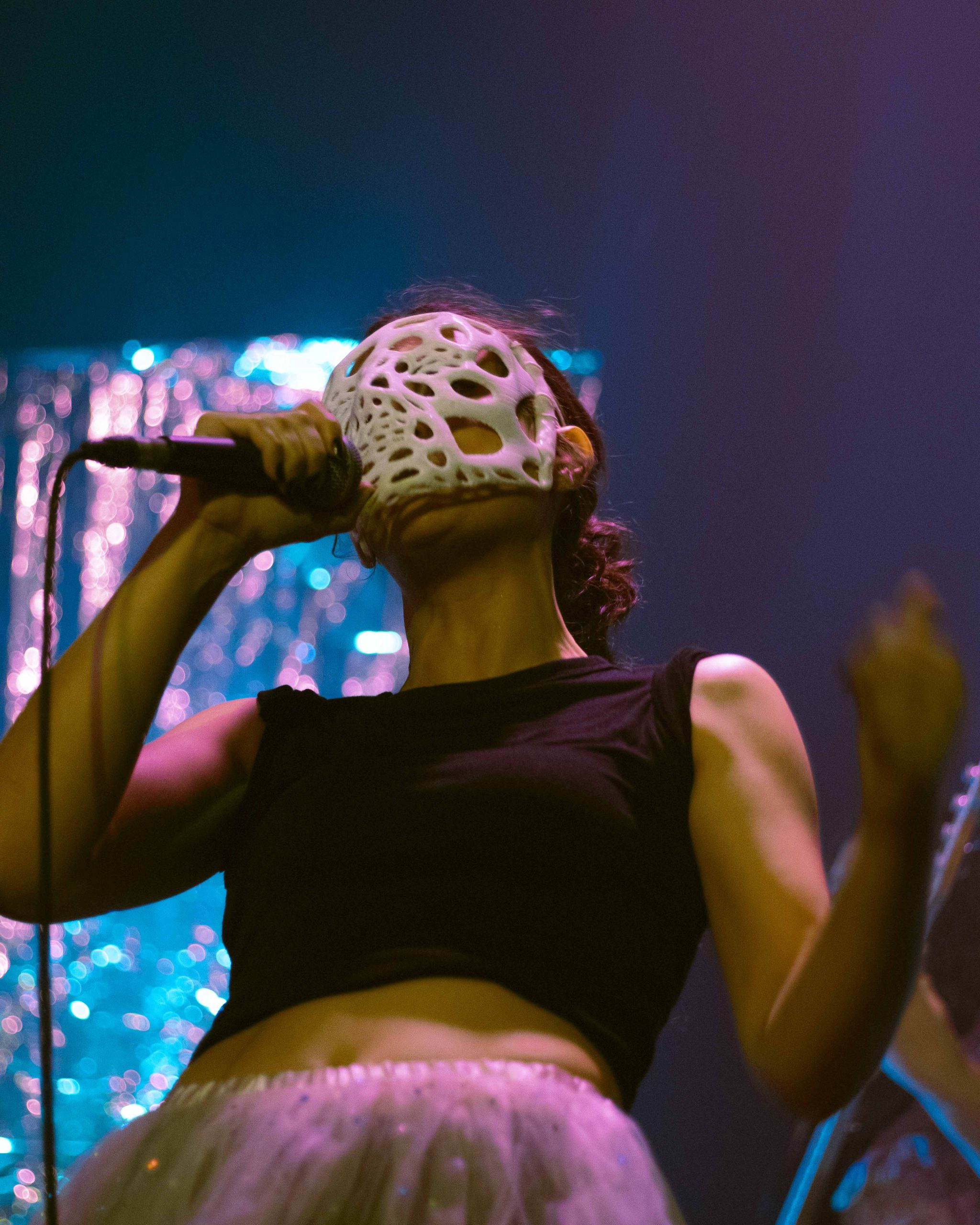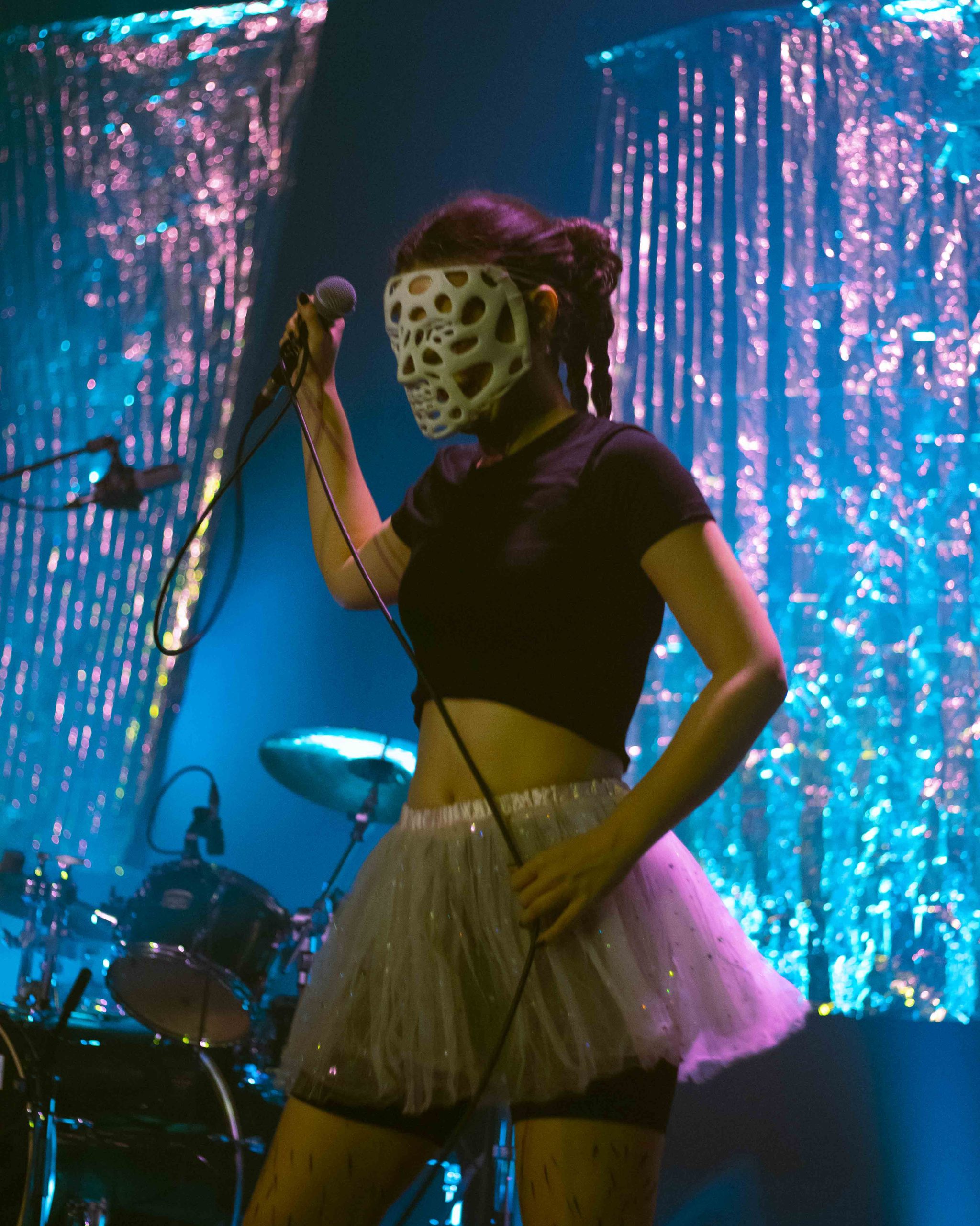 Entre balões, doces que “grudam no dente” como as aMijas grudam no ouvido, a festa foi-se fazendo com a ajuda das crianças que brincavam na fila da frente e ainda houve dança com o público ao som de Chora No Meu Colo, de Ágata. Perto do final, subiu também ao palco, Tricla (agente do caos e padroeira das boas máscaras) para cantar um tema composto em conjunto com a banda. A rapper, também filha do Poço, regressou para o encore muito pedido pelo público, entre fortes aplausos.